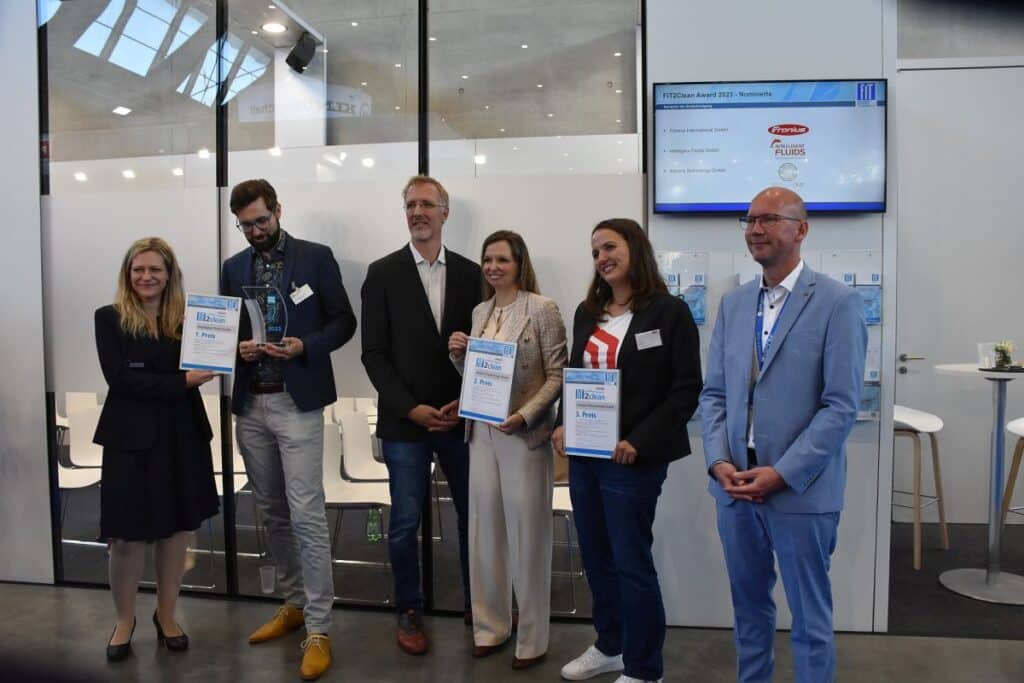 Den Innovationspreis FiT2clean Award hat der der Fachverband industrielle Teilereinigung e. V. (FiT) 2023 zum zweiten Mal vergeben. Es werden damit herausragende Leistungen und Lösungen für die industrielle Bauteilreinigung ausgezeichnet. Unter den drei Finalisten, die ihre Lösungen am dritten Messetag der diesjährigen parts2clean präsentierten, sicherte sich die Intelligent Fluids GmbH mit der Entwicklung innovativer, umweltgerechter Phasenfluide, die klassische Lösemittel zahlreichen Reinigungsanwendungen ersetzten können, den ersten Platz.